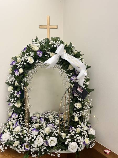 Les pompes funèbres du bassin minier proposent un service de qualité et un large choix de compositions de fleurs ,type bouquet ,couronne ,dessus et devant de cercueil ,croix ,arrondi ,cœur...