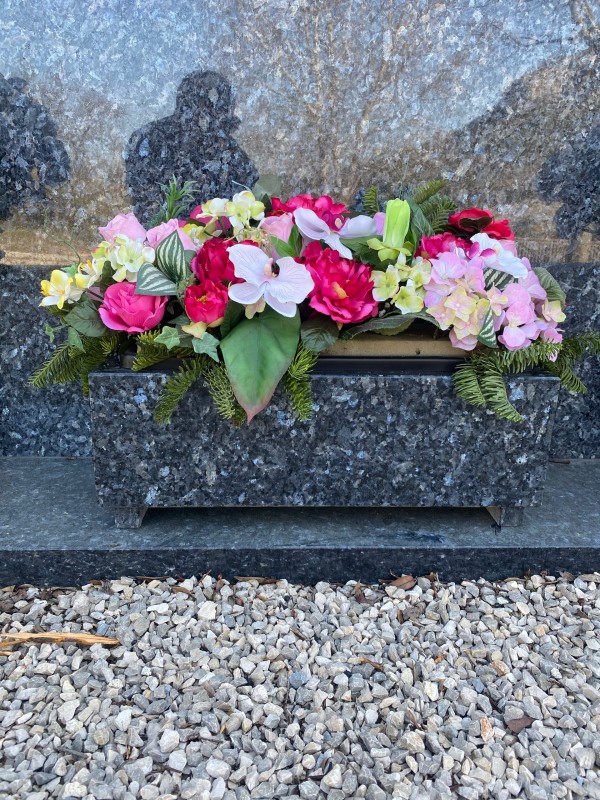 Nous proposons aussi des jardinières que l'ont met devant les monuments pour fleurir également en permanence votre caveau.