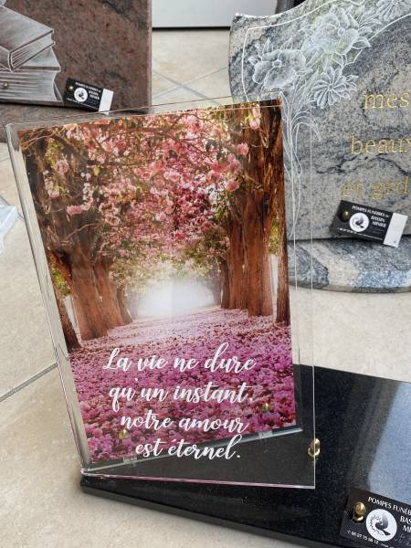 des plaque en granit ou en plexiglass, avec des photos porcelaine ou en lithogravure
